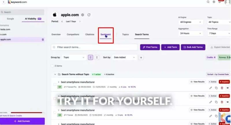 It’s not enough to show up in LLM responses; how you show up matters, too. Keyword.com’s sentiment analysis helps you track how positively or negatively your brand is mentioned in AI-generated content, so you can respond or reposition accordingly.