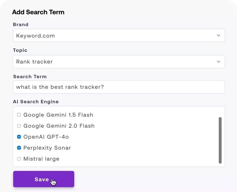 Consider feeding your priority prompts into Keyword.com’s AI rank tracker. It’ll help you see how you rank (or don’t) in AI responses.