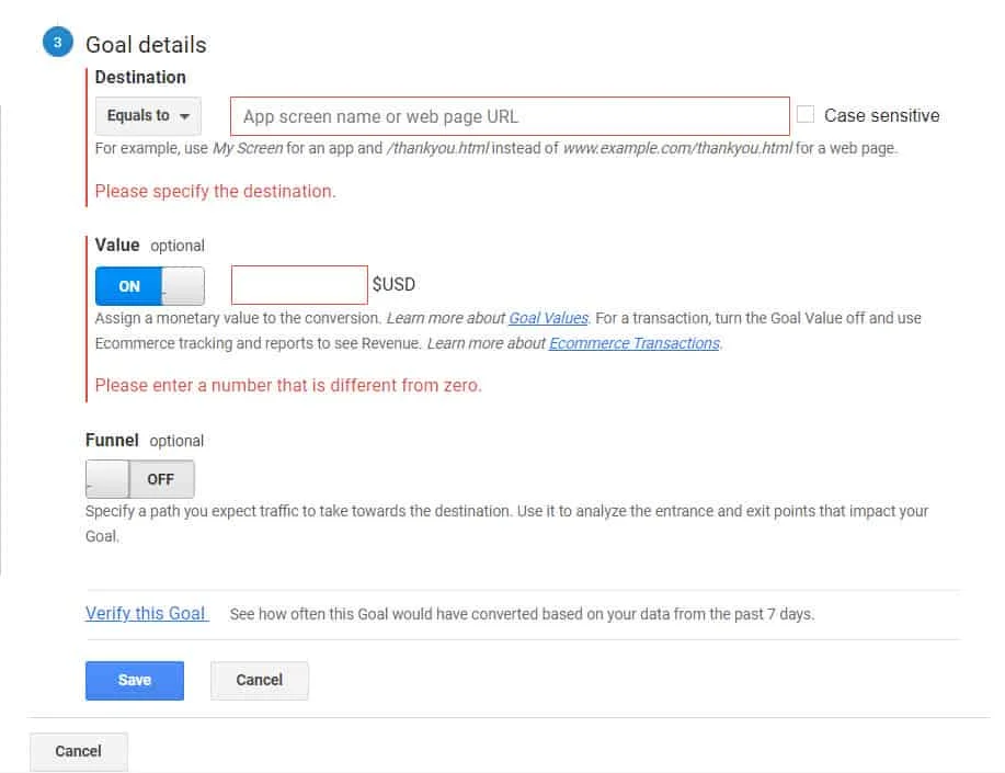 More importantly, you can set the amount of money that users will be spending upon reaching this page on your site. If your goal is not to generate revenue, you can turn this off. Do this on all of the pages you wish to track, in particular landing pages.