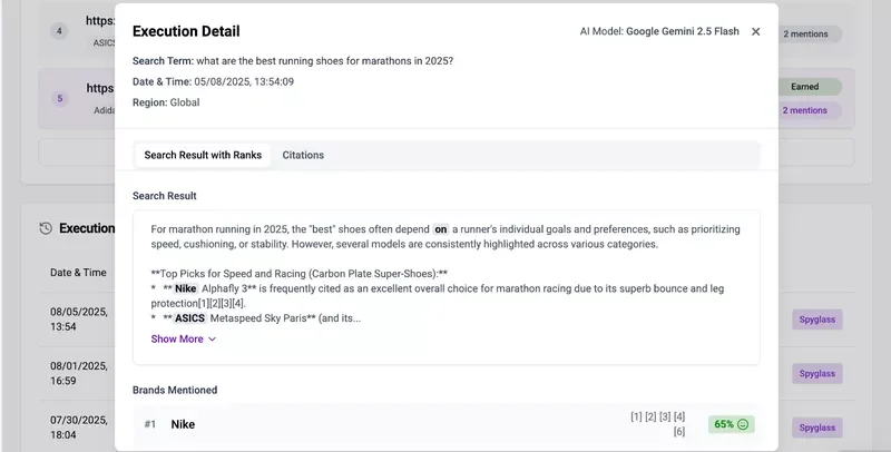- Spyglass view to see exactly how AI engines like Perplexity present results for your chosen term