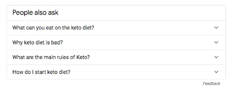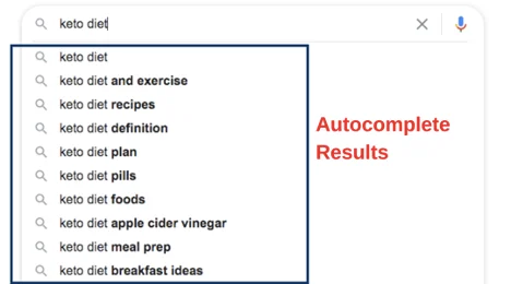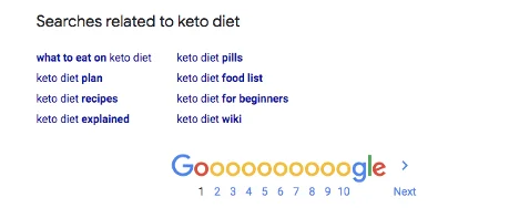 For example, if you type “keto diet” into the browser, you’ll get a variety of ideas that might qualify as long-tail keywords.
